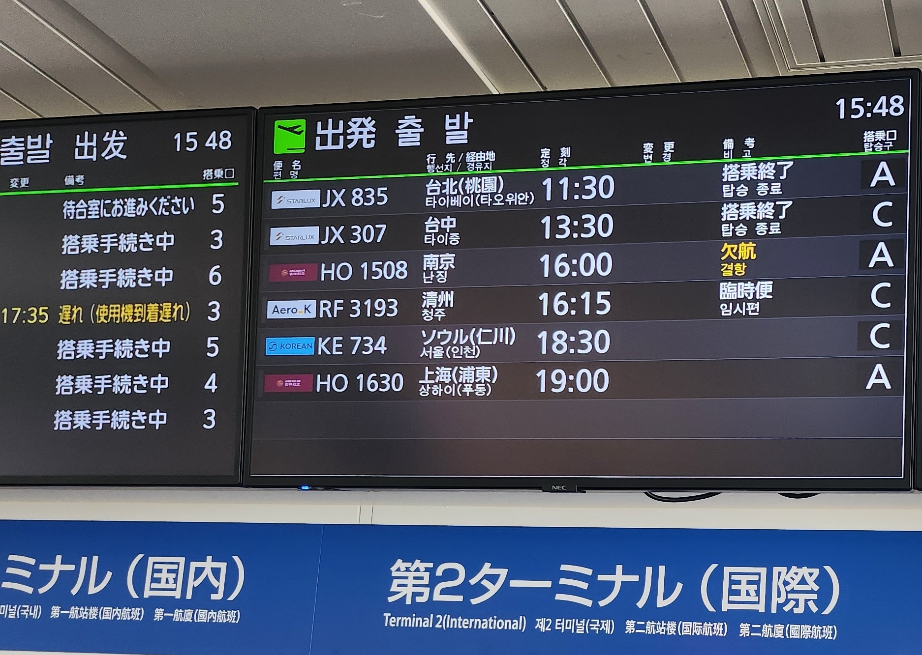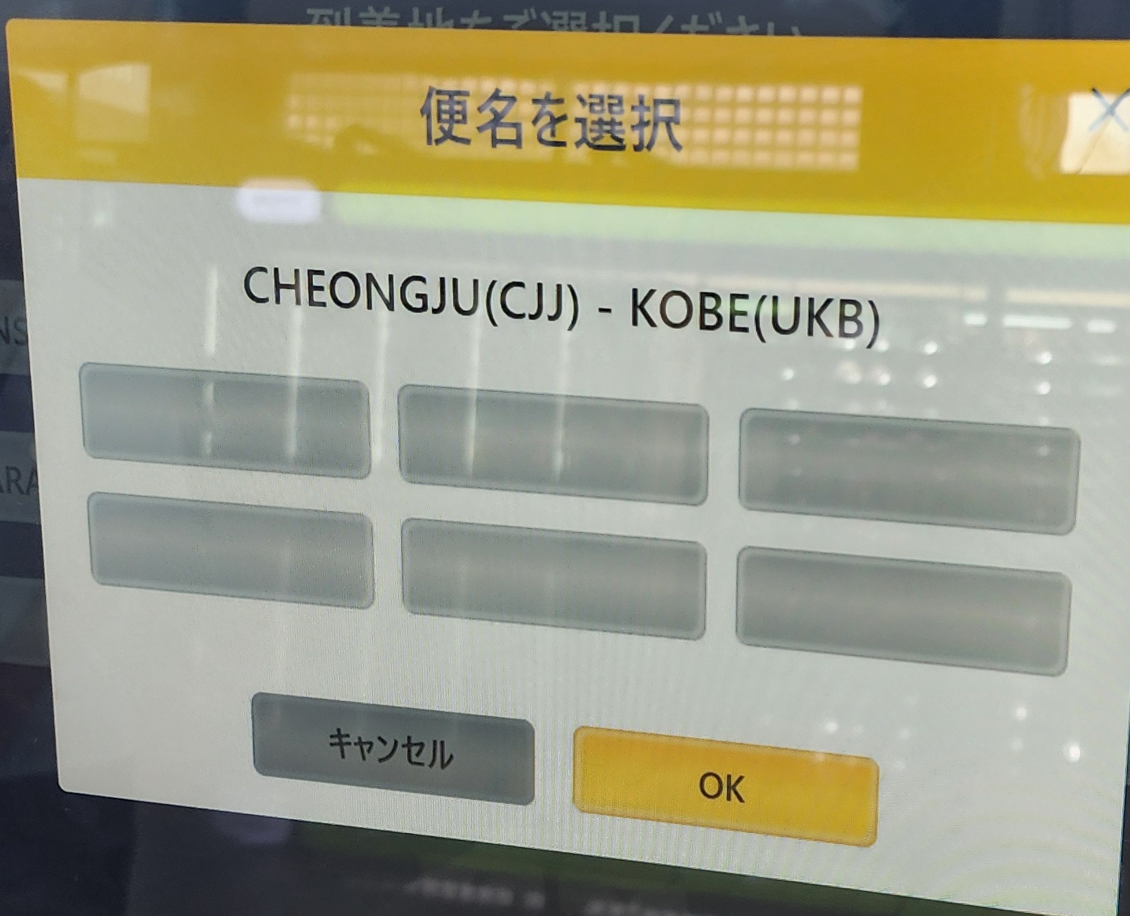 清州国際空港発の国際線で、自動チェックイン機が問題無く使えました。便名選択で神戸を選ぶことができました。