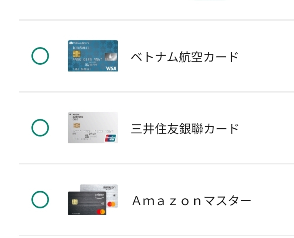 なぜか一部の画面だと「ベトナムエアラインズカード」ではなく「ベトナム航空カード」と表示されます。不思議な表記揺れですね。